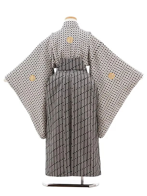 男児卒園袴(7歳) 0827 白黒紋付×黒シルバー袴