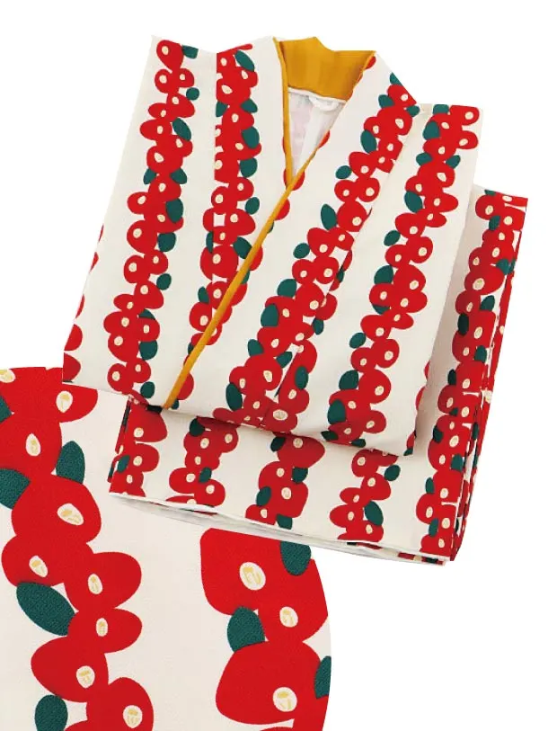 二部式着物 0001【永楽屋】オフホワイト 赤椿