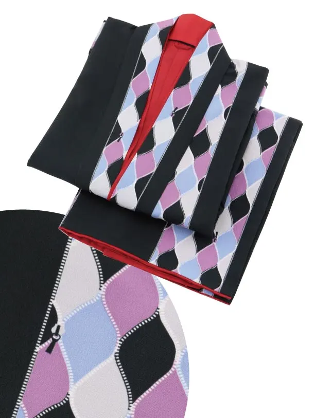 二部式着物 0018【永楽屋】黒地ファスナー柄