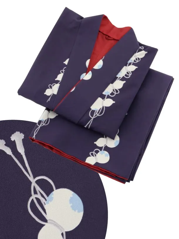 二部式着物 0021【永楽屋】 パープル地ひょうたん模様