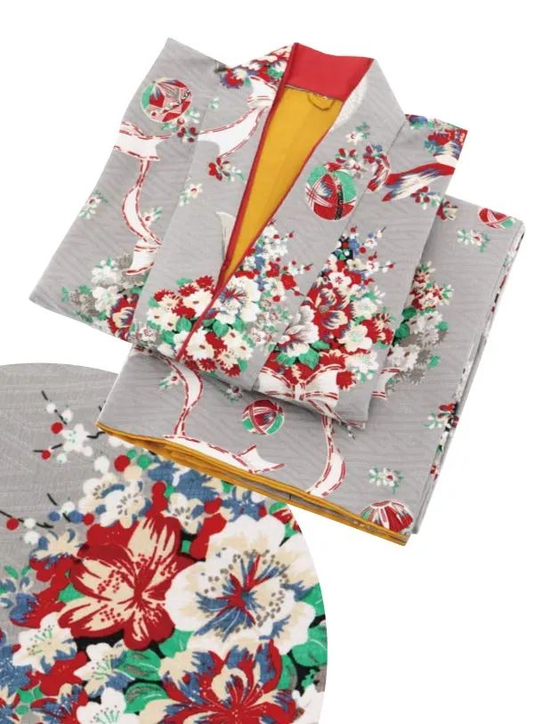 二部式着物 0031【モダンアンテナ】手鞠とブーケ