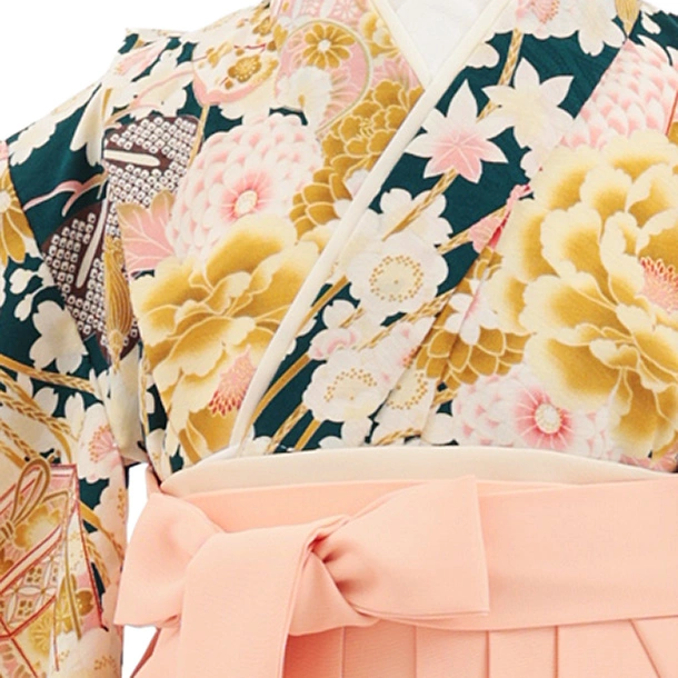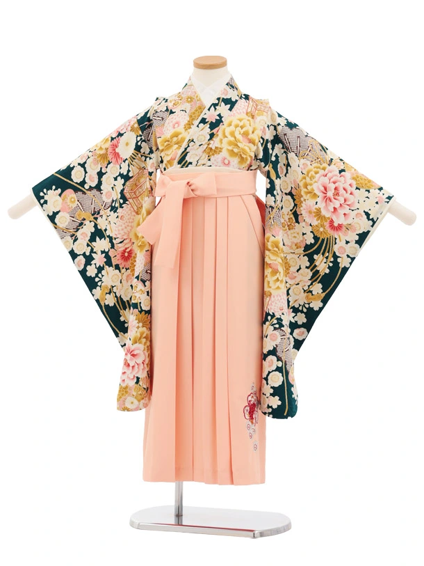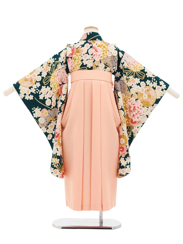 卒園式・七五三女児袴(6歳7歳)Y676 華徒然グリーン薬玉に貝桶×ピーチピンク