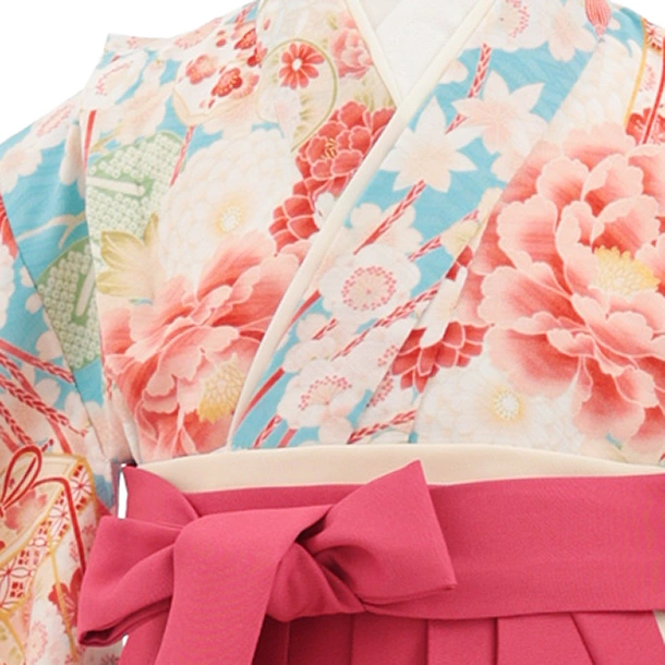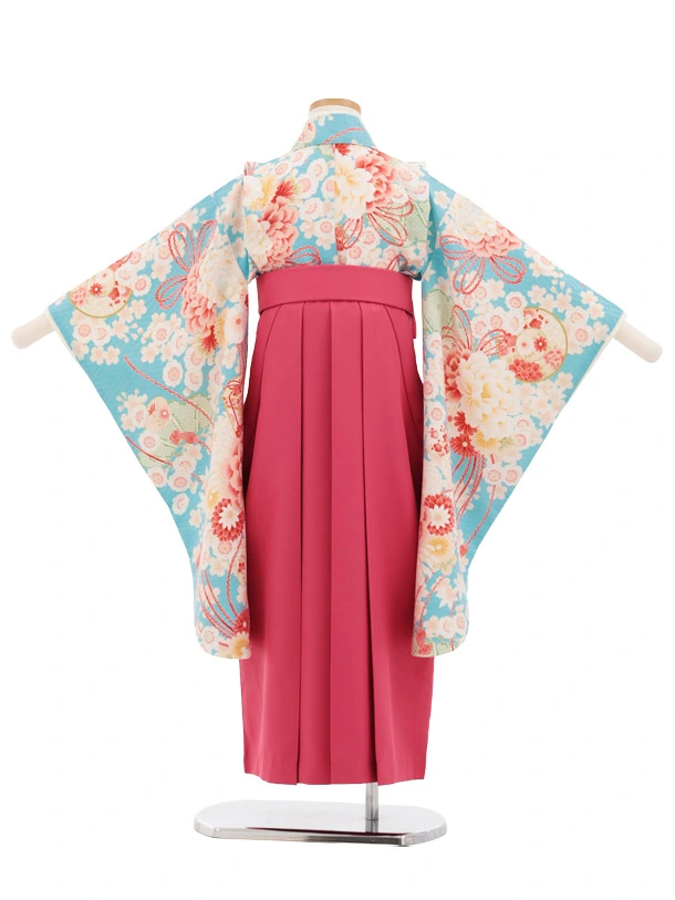 卒園式・七五三女児袴(6歳7歳)Y679 華徒然 水色薬玉に貝桶×ローズ