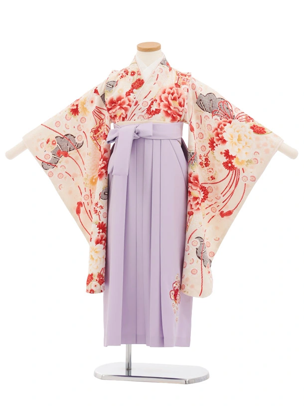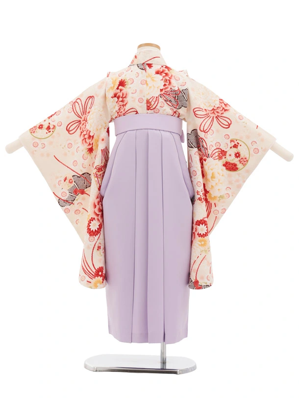 卒園式・七五三女児袴(6歳7歳)Y681 華徒然 クリーム薬玉に貝桶×ラベンダー