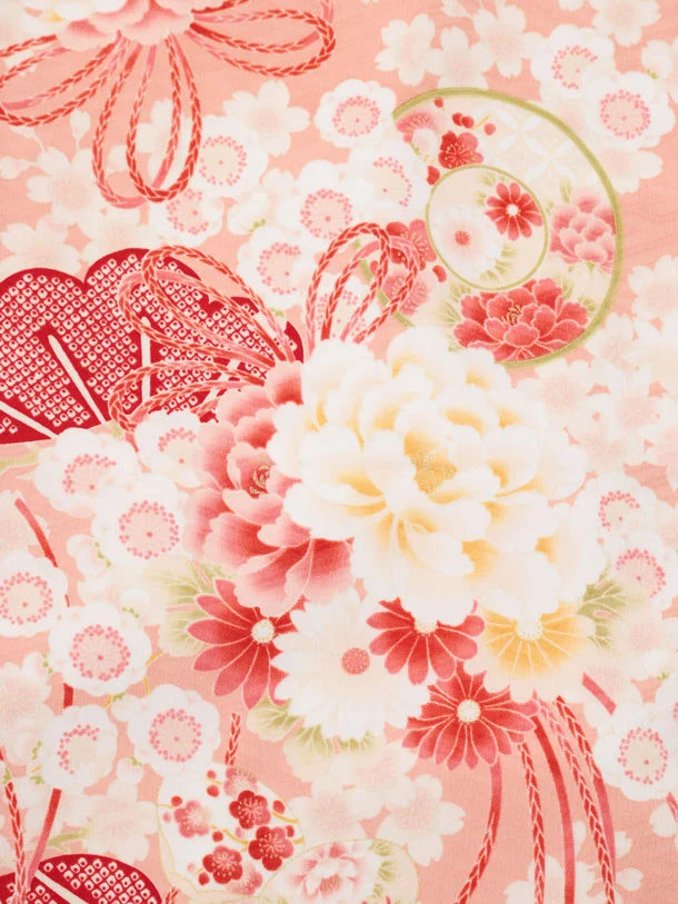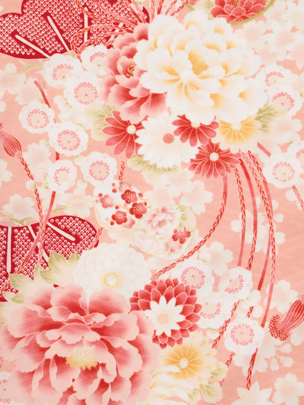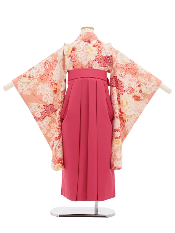 卒園式・七五三女児袴(6歳7歳)Y685 華徒然サーモンピンク薬玉に貝桶×ローズ