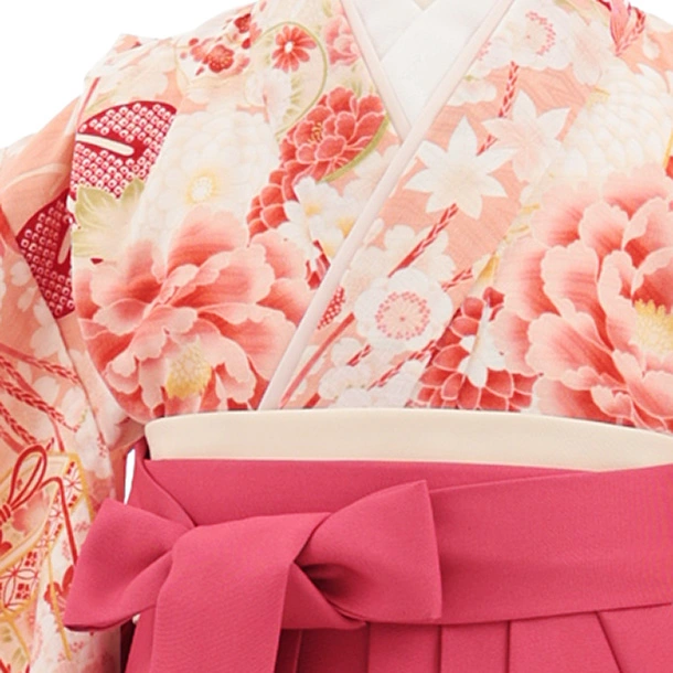 長襦袢衿と着物が一体型、半幅帯付きの袴なので、はじめての方でも簡単に着付けができます。