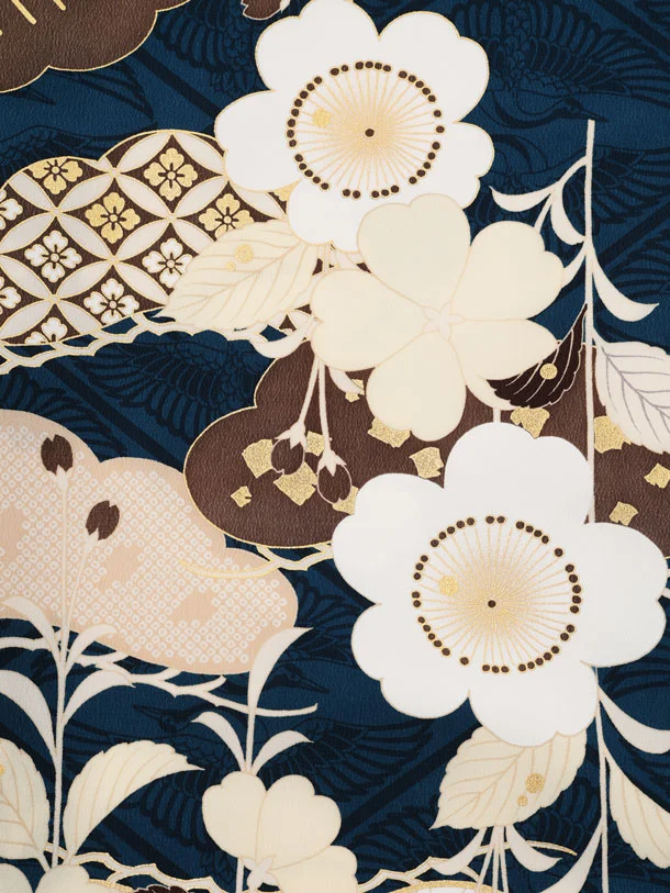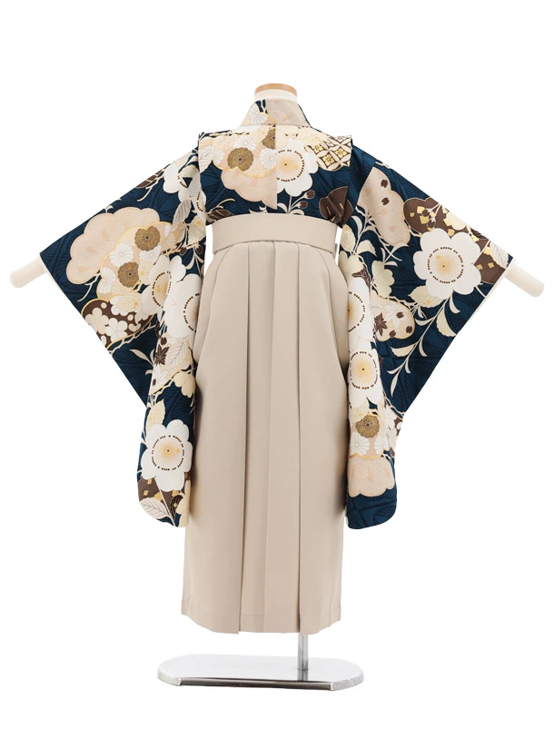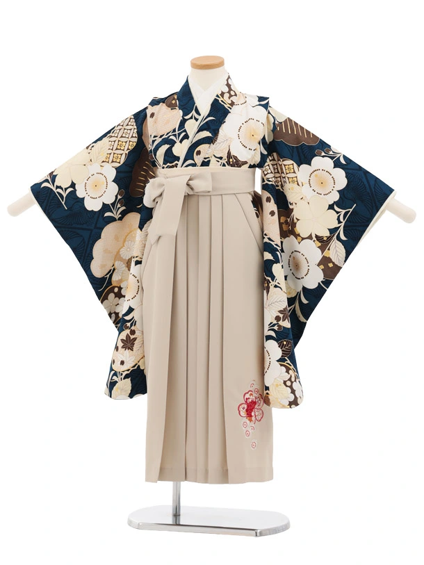 卒園式・七五三女児袴(6歳7歳)Y687 紅一点 紺地 桜×ベージュ