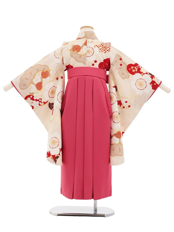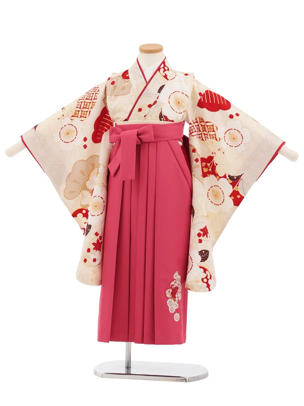 卒園式・七五三女児袴(6歳7歳)Y690 紅一点 薄ベージュ 桜×ローズ