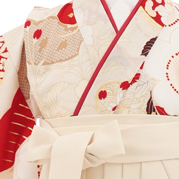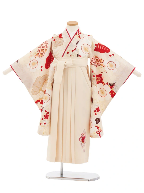 卒園式・七五三女児袴(6歳7歳)Y691 紅一点 薄ベージュ 桜×クリーム