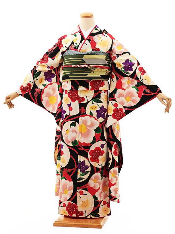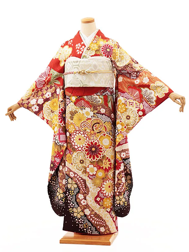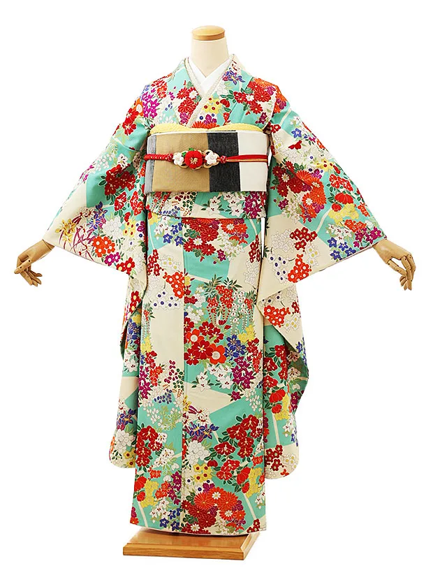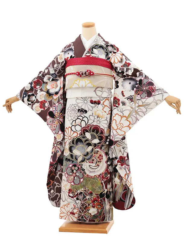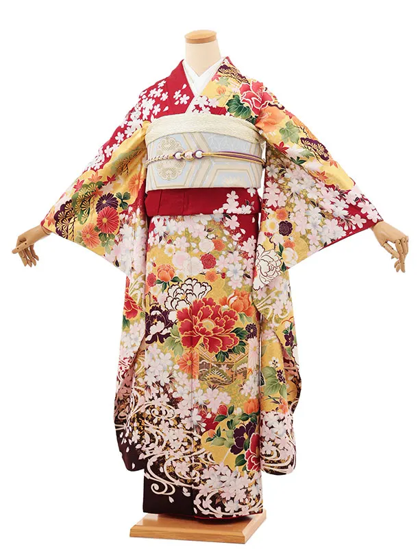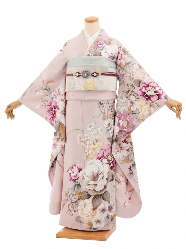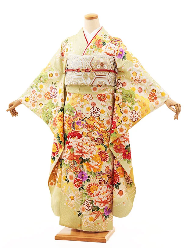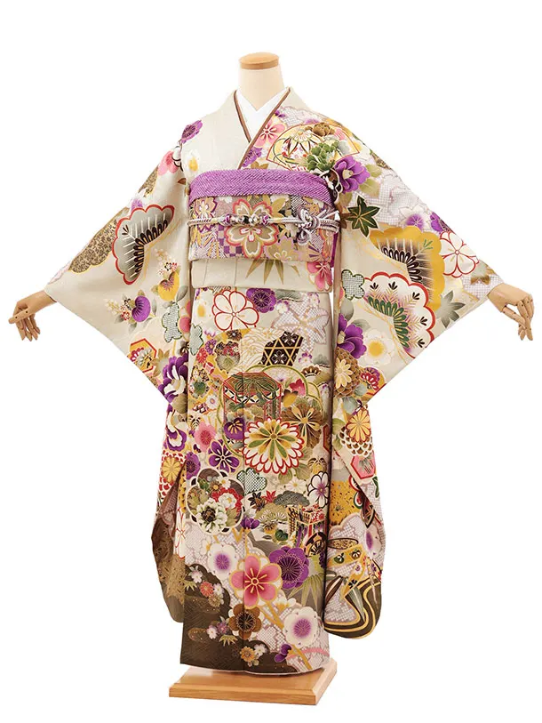 未婚女性の第一礼装。袖丈が長く紋は入っていないものが多いです。(京都かしいしょうの振袖も紋は入っておりません。)