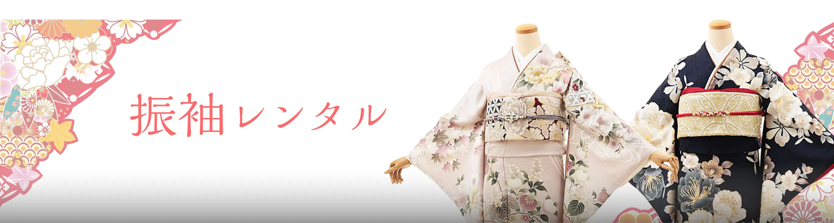 振袖のレンタルのメリットは価格が安いこともありますが、ご利用シーンに合った、色や柄をお選びいただけるところです。又、足袋まで付いたフルセットレンタルとなっておりますので、お着付けに必要な小物は全てセットになっていて大変便利です。