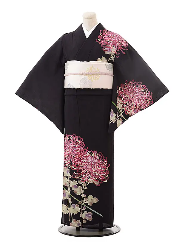 夏訪問着 絽 t0047黒地胡蝶蘭と花