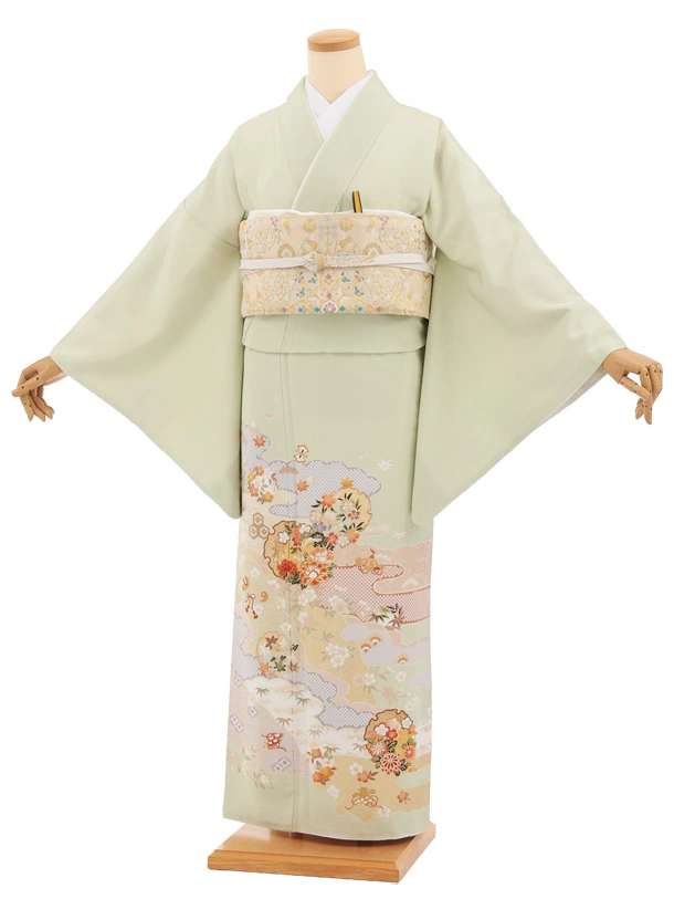 色留袖は普通の振袖よりも利用範囲が広く、未婚の方でも着用できる品のある着物として人気があります。ご利用シーンも幅広く結婚式や披露宴など友人として招待された場合や、結婚式の新郎新婦の親戚や上司の奥様が参列される時などに着用されることが多いです。宮中での正式礼装でもあり、褒章や叙勲の伝達式に臨む女性の正装としても最適ですが、その他でも格式のある場やパーティー、結納などでも着用することができます。地色は黒以外になっていて、様々な色の色留袖の種類があります。色留袖に合わせる長襦袢は白になっております。