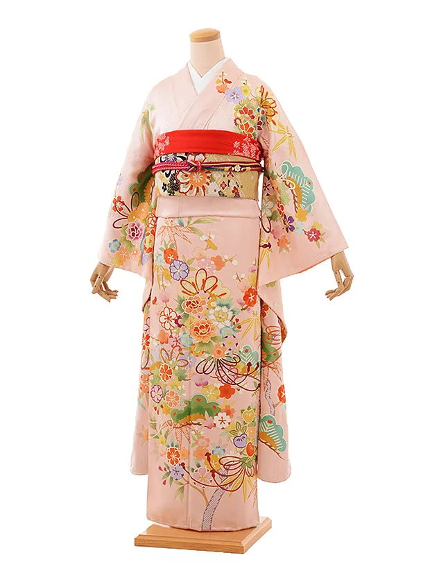 振袖レンタル609ピンク松古典