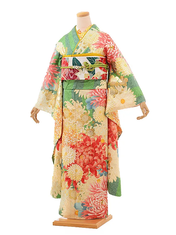 振袖レンタル989(YumiYumi)桂由美黄緑菊梅