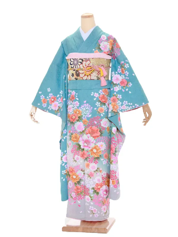 振袖レンタル530水色Sサイズ振袖(小さいサイズ)