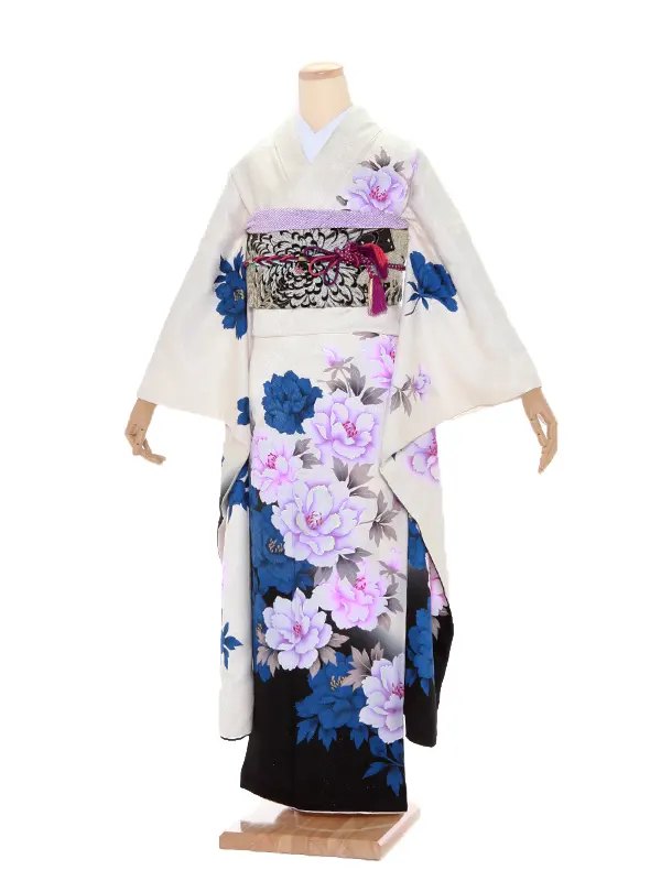 振袖レンタル533白×黒小花Sサイズ振袖(小さいサイズ)