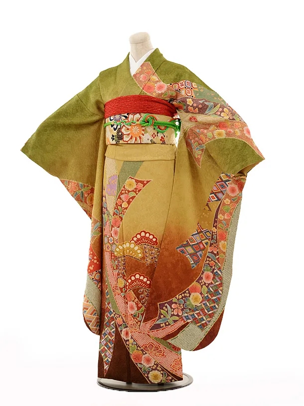 振袖レンタルE092グリーン茶熨斗目
