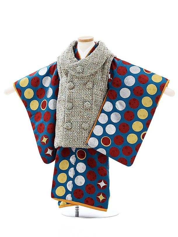 七五三レンタル(3歳男児被布)2709モダンアンテナ モッズグレーxブルードット
