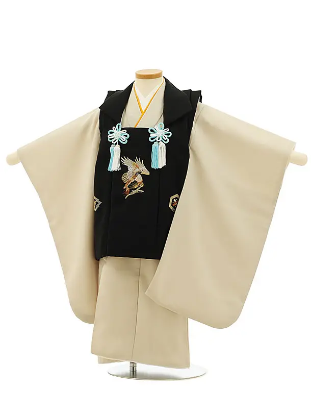 七五三レンタル(3歳男児被布)2759黒刺繍鷹xベージュ