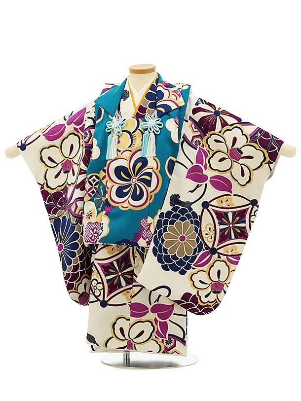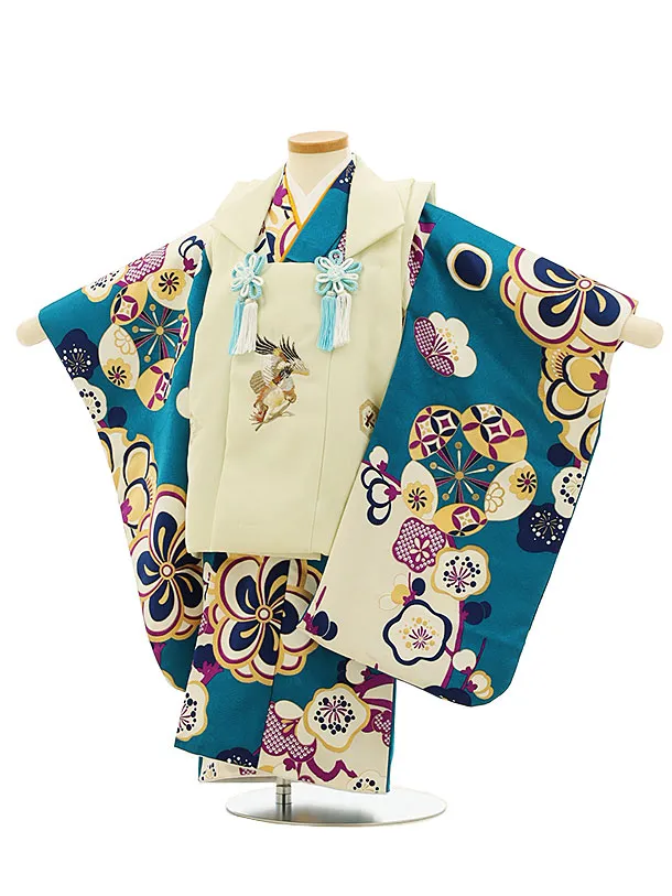 七五三レンタル(3歳男児被布)2763ターコイズ梅x白地梅