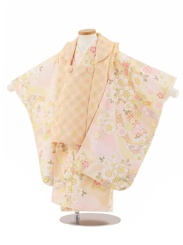 七五三レンタル(3歳女児被布)4579 ベージュ×ピンクベージュ梅とまり