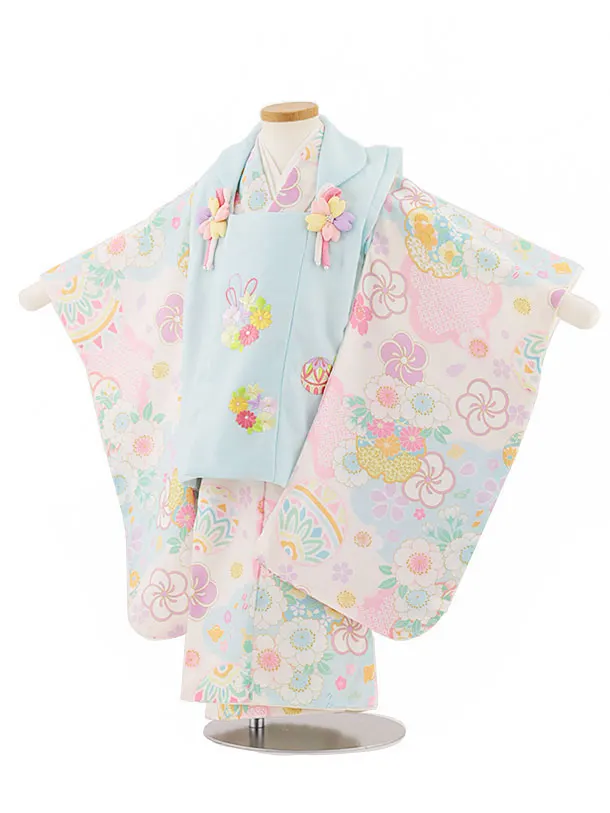 七五三レンタル(3歳女児被布)4574 水色×水色菊にまり