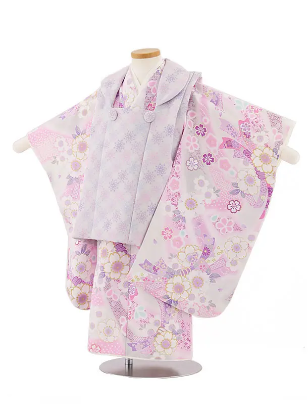 七五三(3歳女児)4560 パープル花刺繍×パステルパープルまりと花