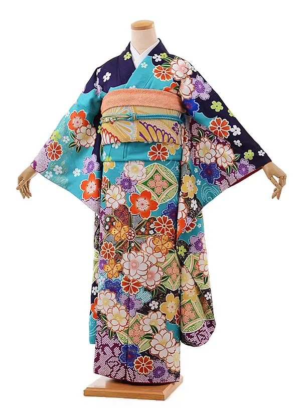 振袖レンタル1046(YumiYumi)ターコイズ桜花