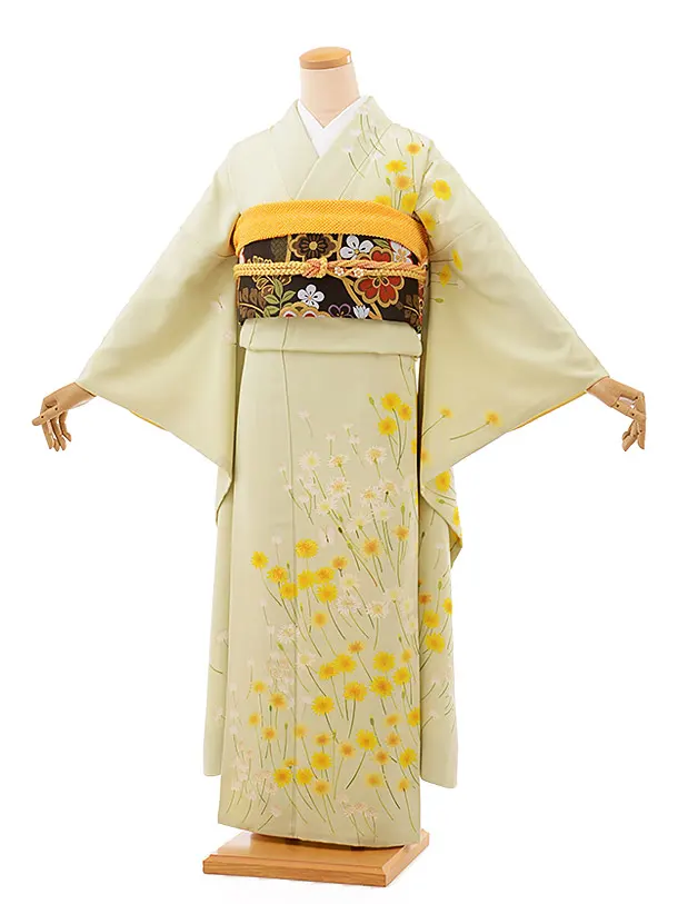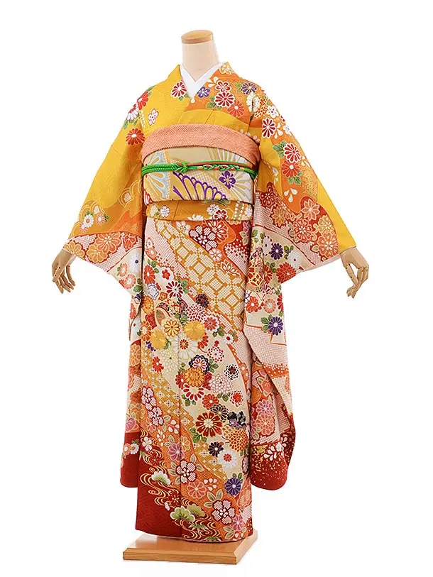 振袖レンタル1058(優羽)黄色地金コマ刺繍菊と小槌