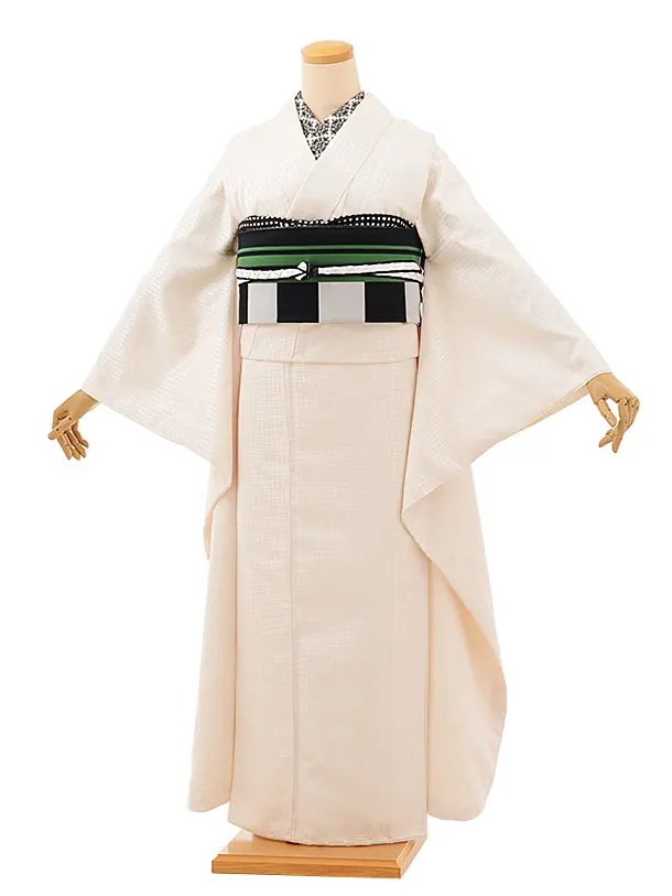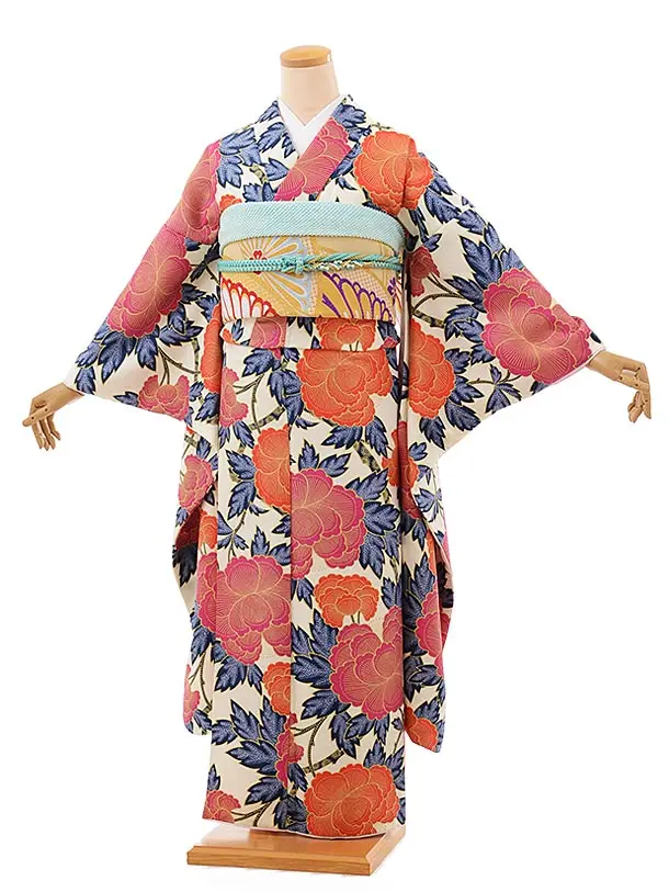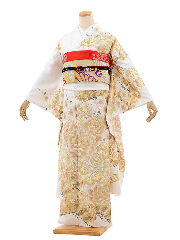 振袖レンタル1104 アイボリーねじり梅 御所車ぼたん