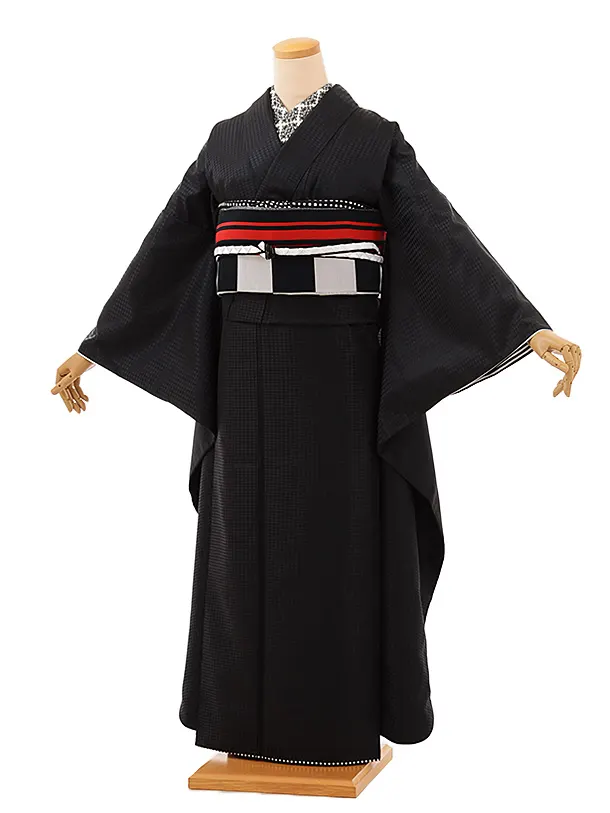 振袖レンタル1091 黒白ストライプアシンメトリー