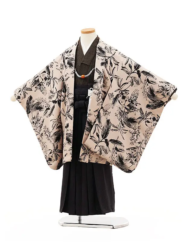 七五三レンタル(5歳男袴)X531 ベージュフラワー×ベージュ