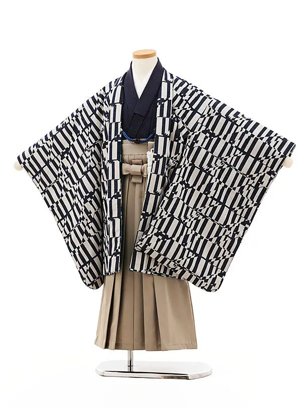 七五三レンタル(5歳男袴)X535 紺幾何学×ベージュ