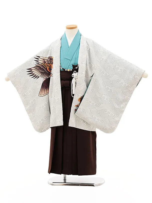 七五三(5歳男袴)X843 グレージュ疋田柄刺繍鷹兜×白黒ぼかし