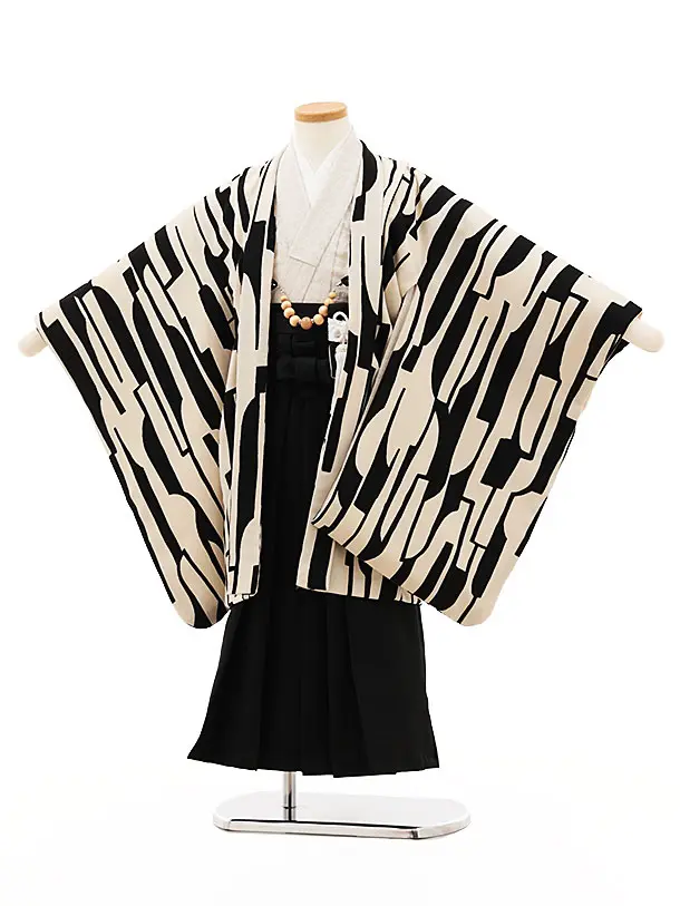 七五三レンタル(5歳男袴)X546 ラフィネココ アイボリー黒変わり柄×黒