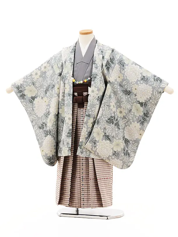 七五三レンタル(5歳男袴)X566 グレーガーデン×ベージュ千鳥