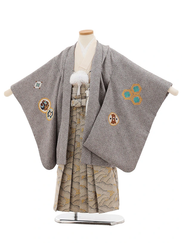 七五三レンタル(5歳男袴)X536 ラフィネココ ベージュドット×グレー
