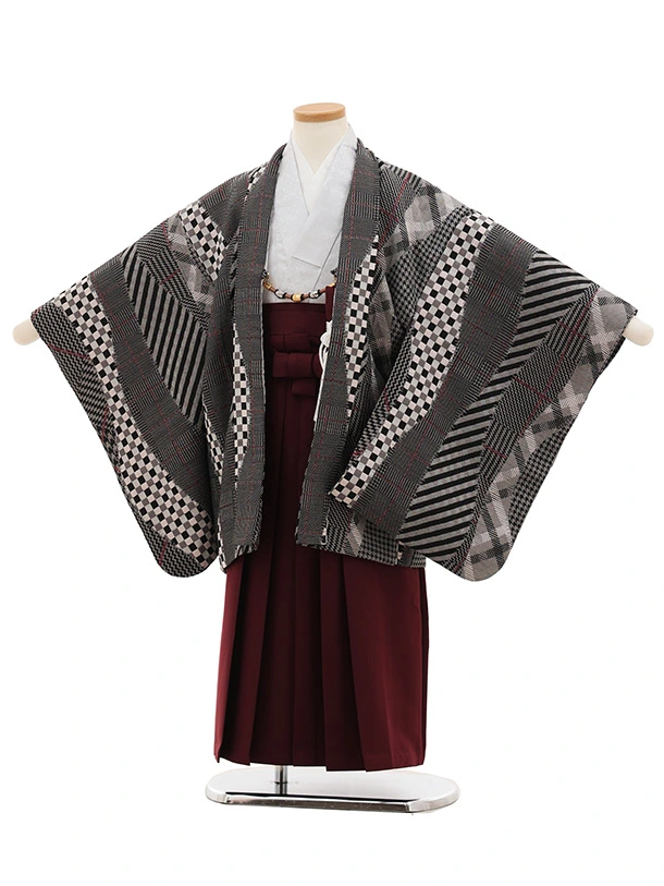 七五三レンタル(5歳男袴)X865 黒チェック×ボルドー