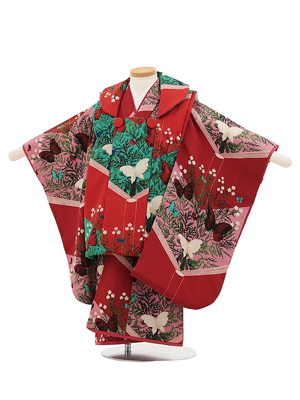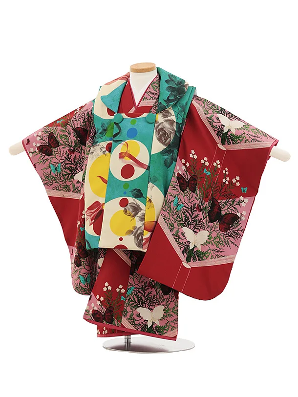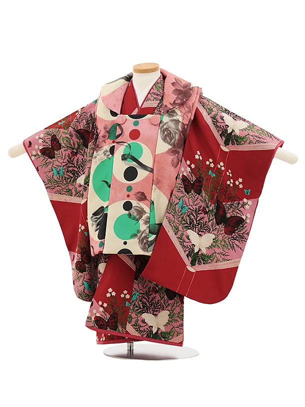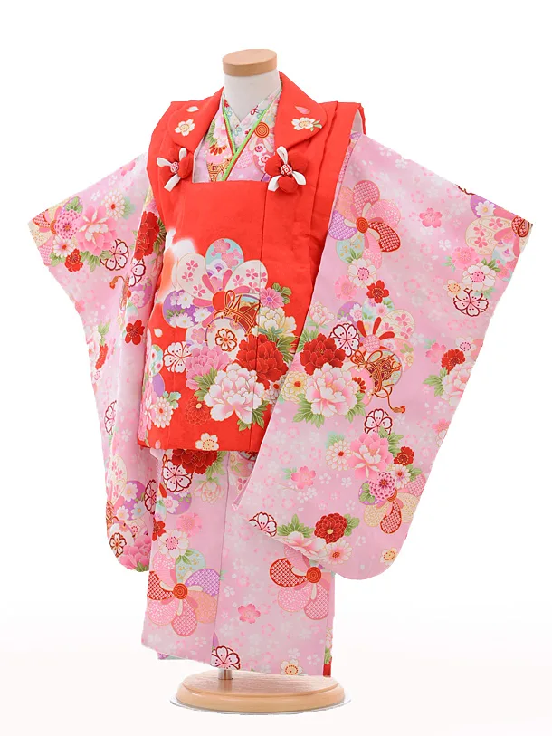 七五三レンタル(3歳女の子被布)3224赤×ピンク鼓花
