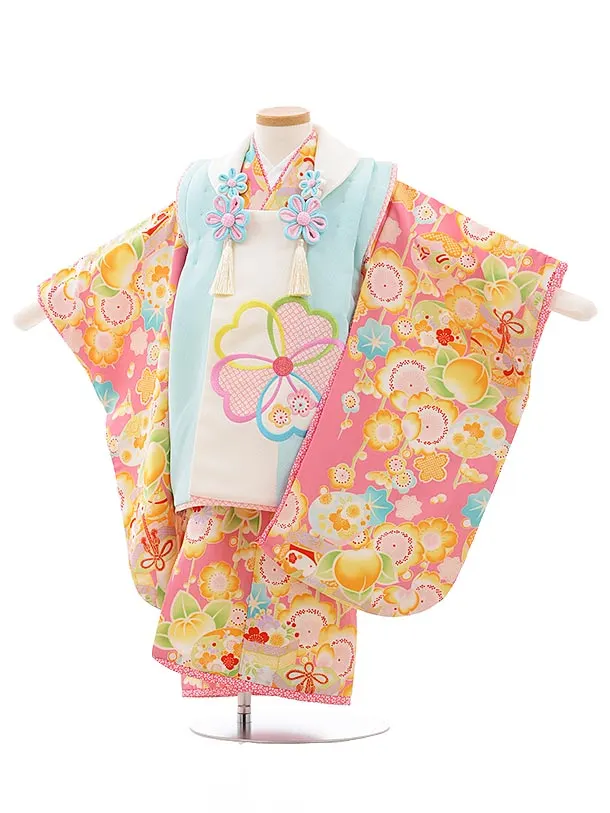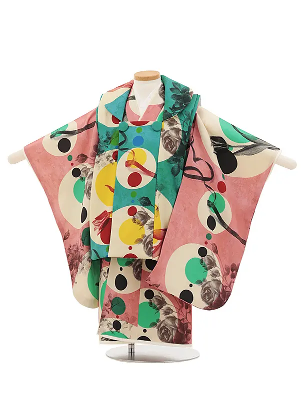 七五三(3歳女児被布)O203【germer】連なる円ピンク×グリーン