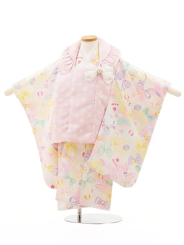 七五三(3歳女児)O167【pitapita】ピンクレースドット×白ピンクリボン