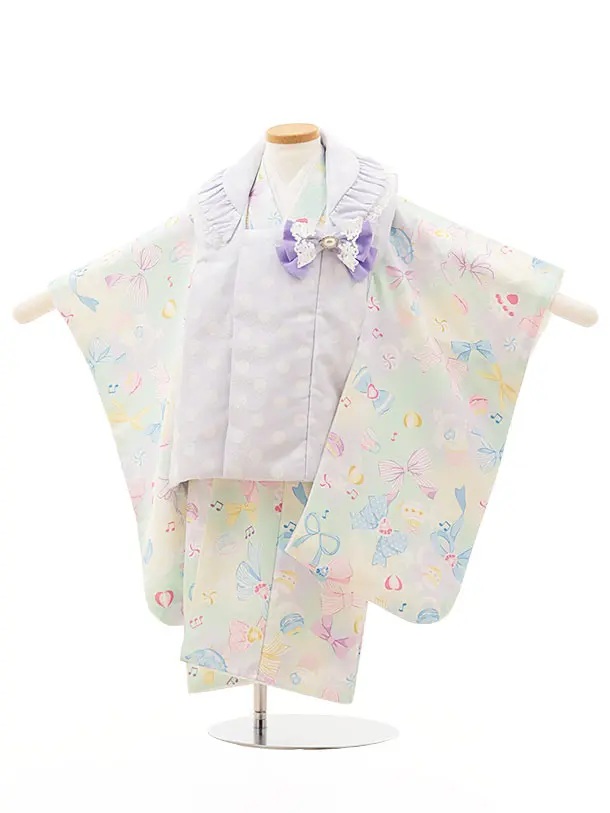七五三(3歳女児)O168【pitapita】パープルレースドット×ミントリボン