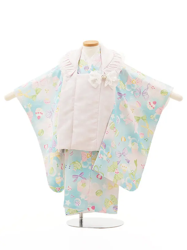 七五三レンタル(3歳女児被布)3589 乙葉 水色×ピンク 桜