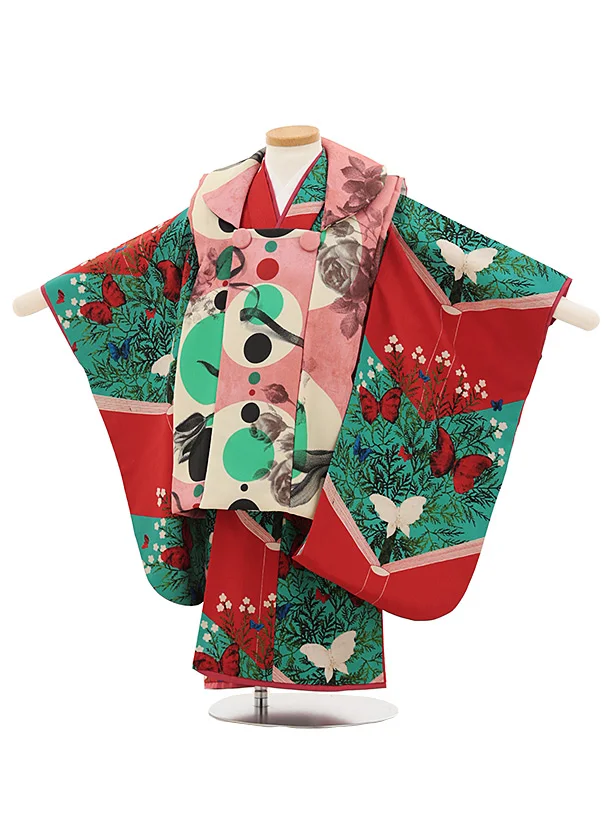 七五三(3歳女児)O195【germer】絵本赤グリーン×赤ピンク