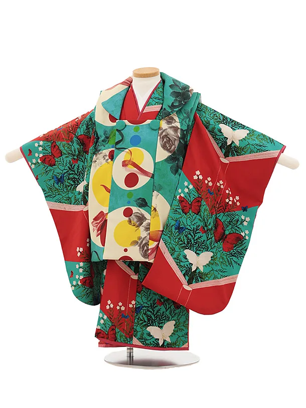 七五三(3歳女児)O201【germer】絵本赤グリーン×連なる円グリーン
