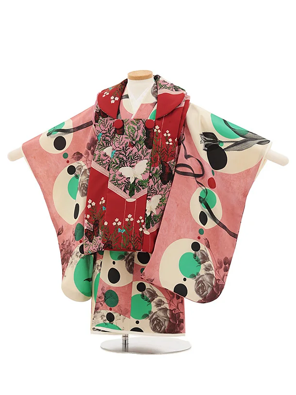 七五三(3歳女児)O190【germer】連なる円ピンク×絵本赤グリーン