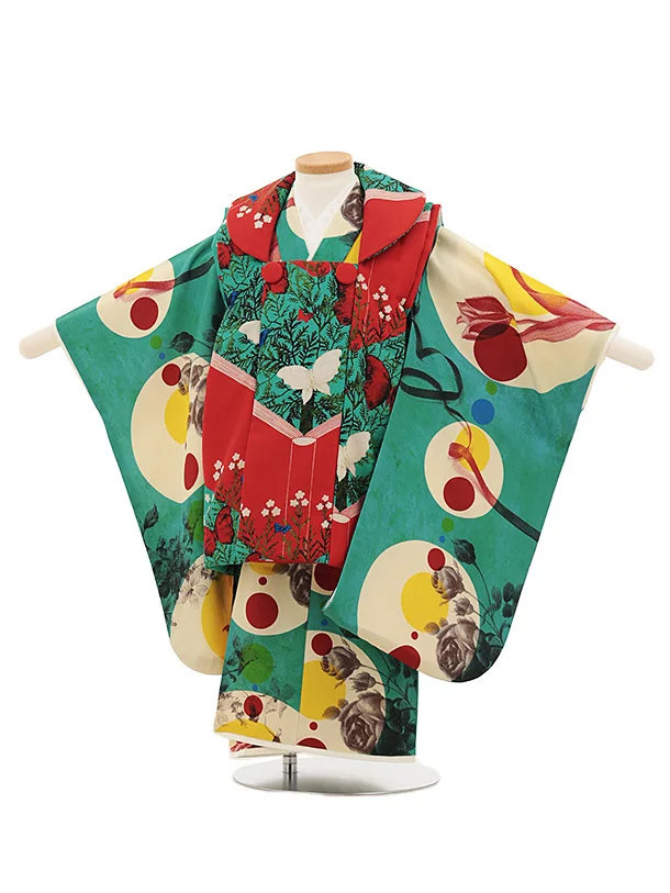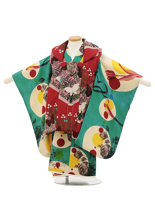 七五三(3歳女児)O191【germer】連なる円グリーン×絵本 赤グリーン