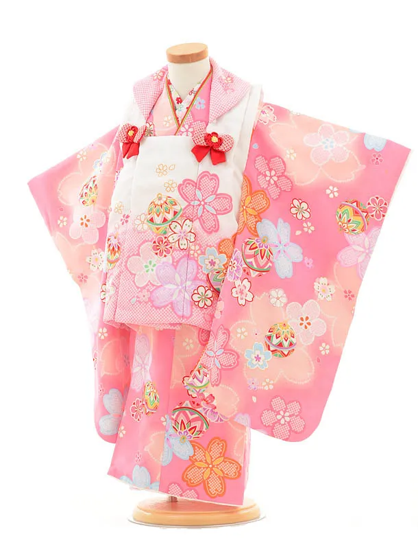 七五三レンタル(3歳女の子被布)3199白ピンクぼかし×ピ