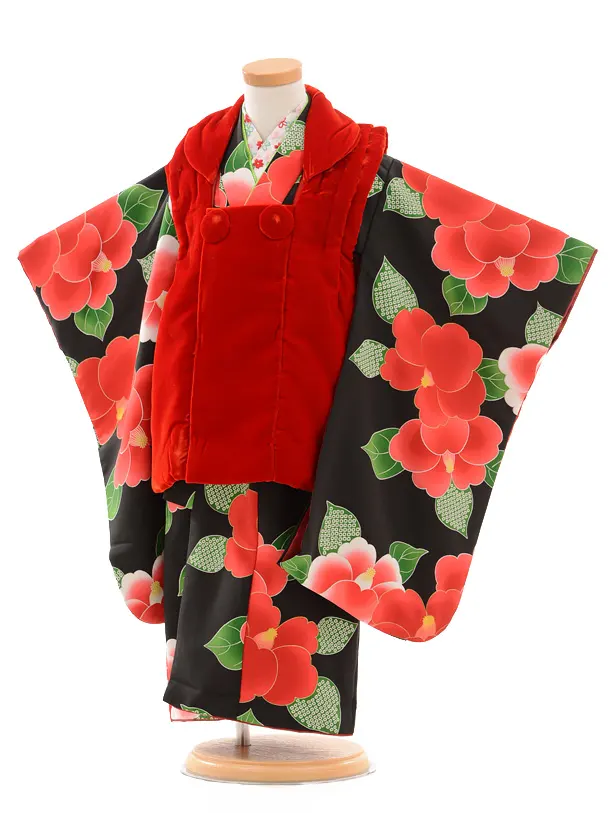 七五三レンタル(3歳女の子被布)3169赤ベルベット×黒椿